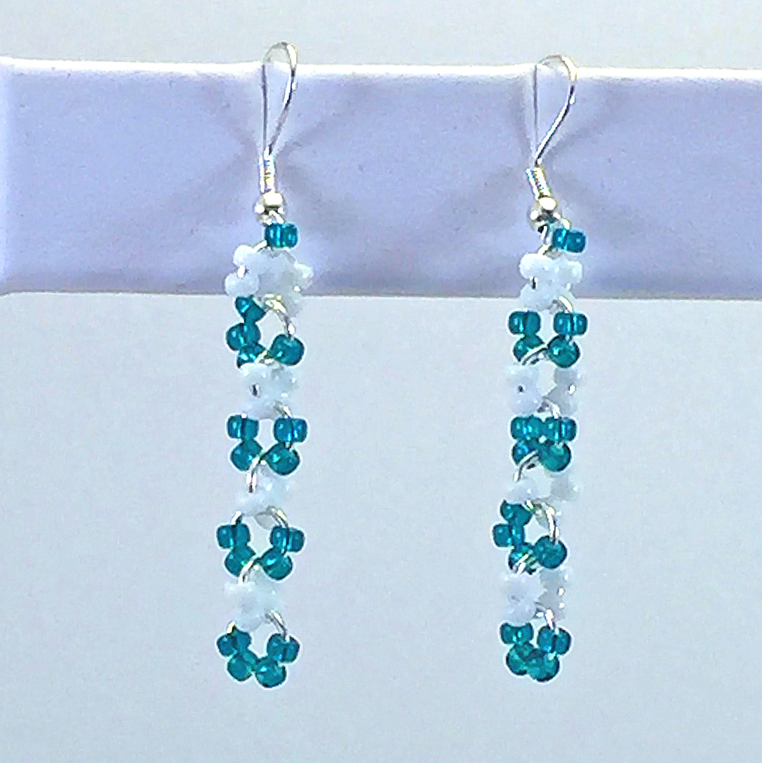 Earrings Dangle-seed-beads-green-whiteEarrings Dangle-seed-beads-green-white C1